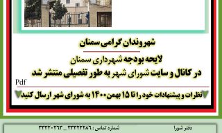 ✅جلسه ۵۲ شورا روز شنبه ۲ بهمن ماه ۱۴۰۰ ساعت ۱۶ برگزار میگردد 🔸گزارش بازدید کمیسیون عمران شورا از مکان پیشنهادی گرمخانه واقع در سوله بحران پارک سیمرغ 🔹ساعت ۱۶/۳۰ حضور موسسه دینی فرهنگی فاطمیه 🔸ساعت ۱۸ حضور آقای قاسم زاده در خصوص وضعیت کشتارگاه 🔹بررسی نامه شماره ۱۵/۱/۱۵۳۷ ثبت شورا درخواست حوزه […]