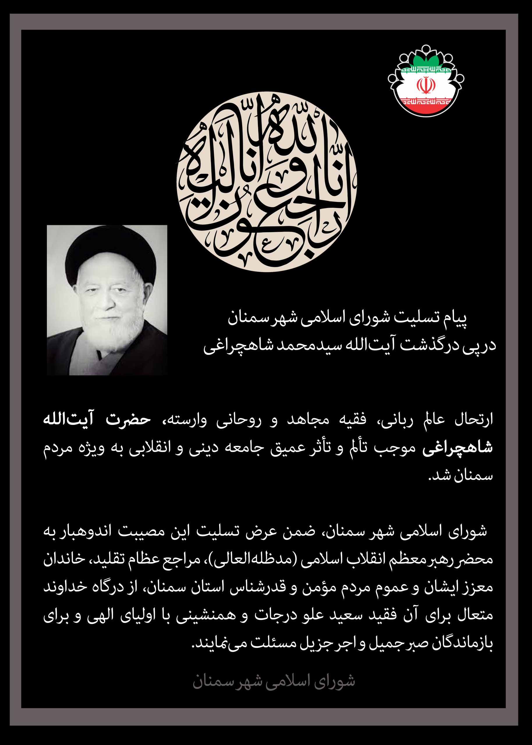 🏴پیام تسلیت شورای اسلامی شهر سمنان