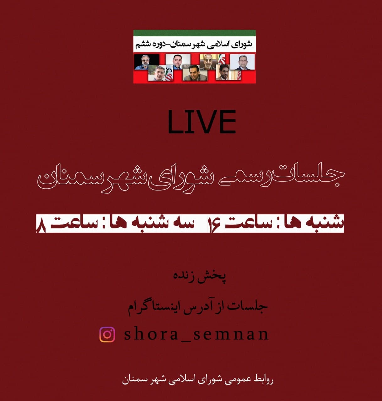 شهروندان و کارکنان شهرداری سمنان می توانند جلسات شورای شهر سمنان را در پخش زنده اینستاگرامی به آدرس Shora_semnan مشاهده نمایند .