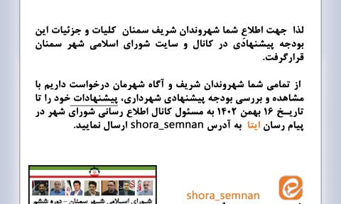 ????وی در پایان پیشنهاداتی را نیز در راستای ایجاد طرح های تفریحی برای شمال شهر سمنان و پارک کوهستان مطرح کرد.